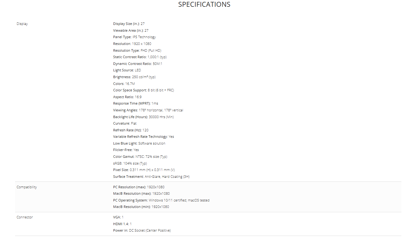 VIEWSONIC VA270A-H 27” FULL HD 120HZ MONITOR WITH FAST 1MS RESPONSE TIME (3 YEAR WARRANTY BY KAIRA TECHNOLOGIES PTE LTD)