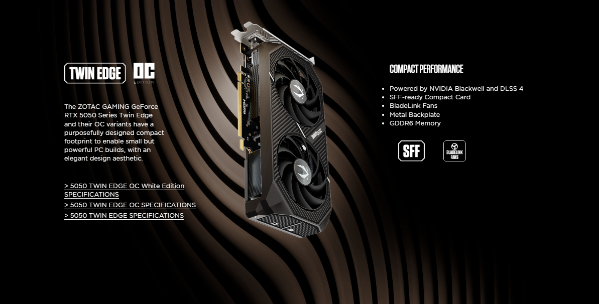 ZOTAC GAMING GEFORCE RTX 5050 RTX5050 TWIN EDGE OC 8GB GDDR6 GRAPHICS CARD (3 YEARS WARRANTY BY TECH DYNAMIC PTE LTD)